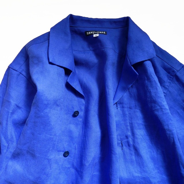 使いやすい中肉厚のリネン100%、鮮やかなコバルトブルーの長袖シャツです。