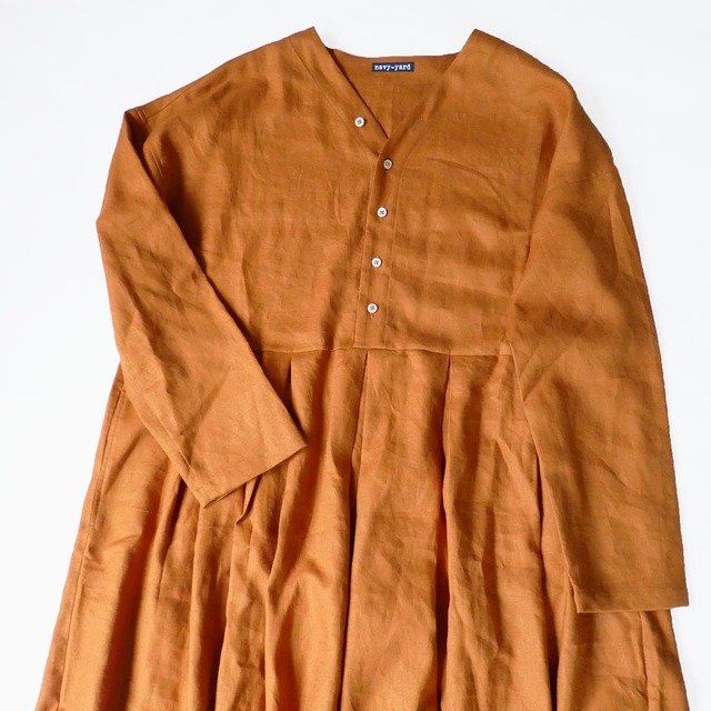明るめのレンガ色(ブリックカラー)が綺麗なロング丈ワンピース。