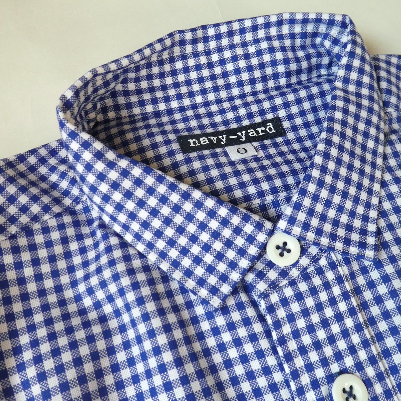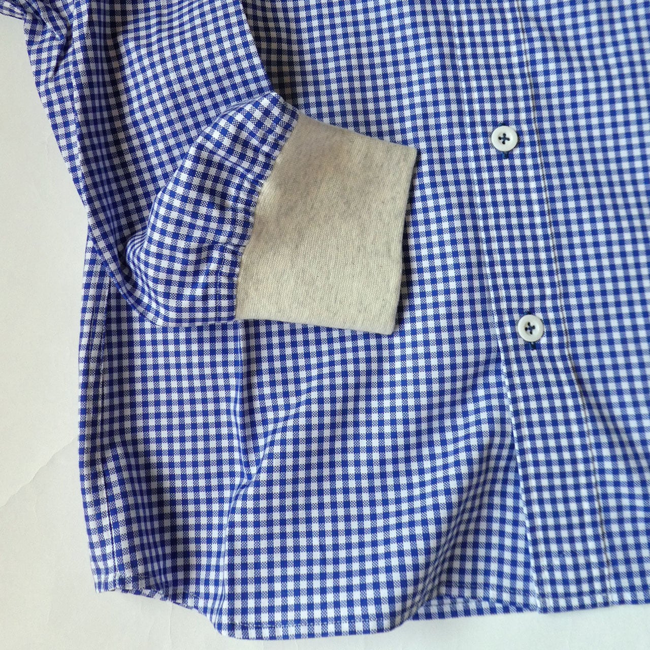 使いやすいブルーのギンガムチェックのワーカーシャツ。