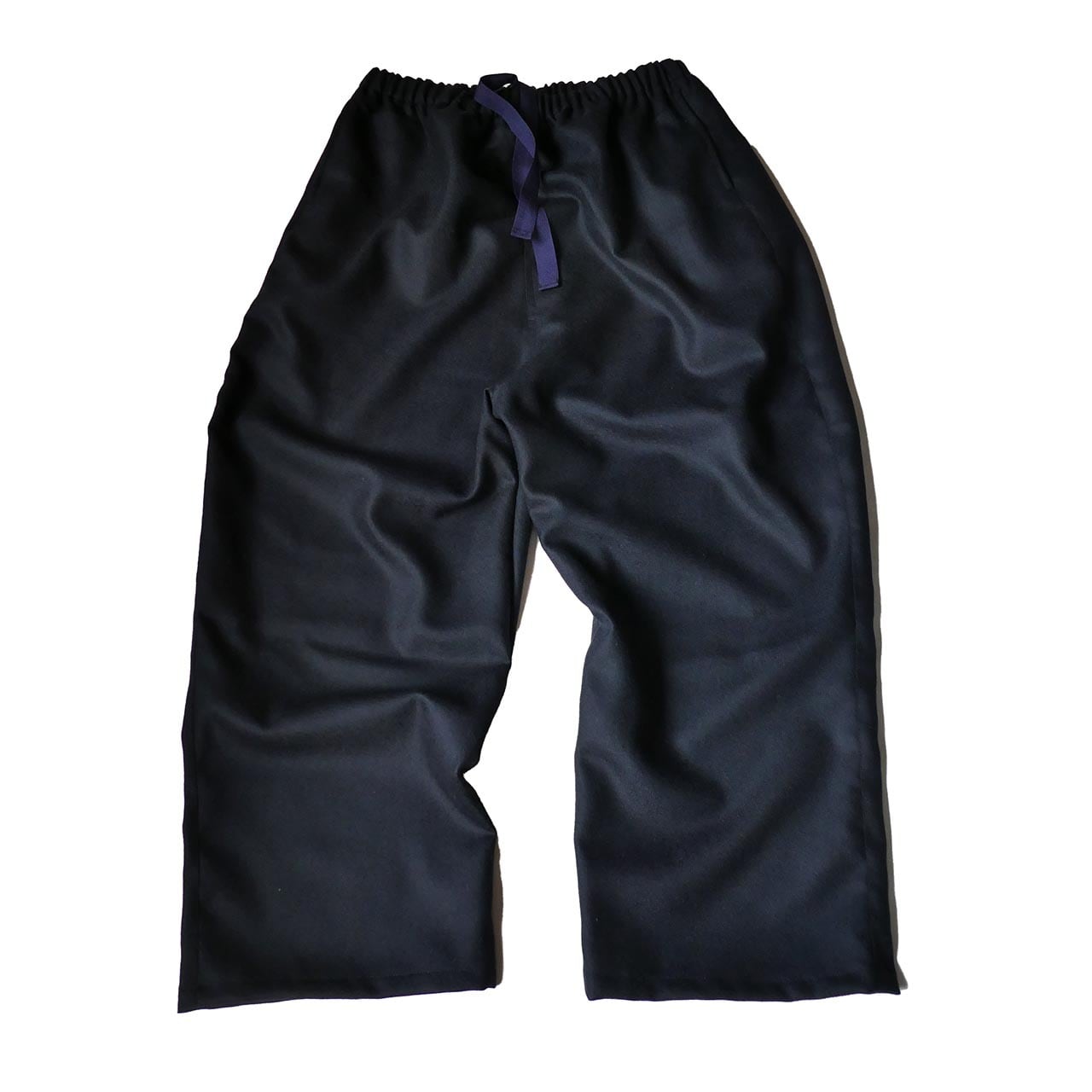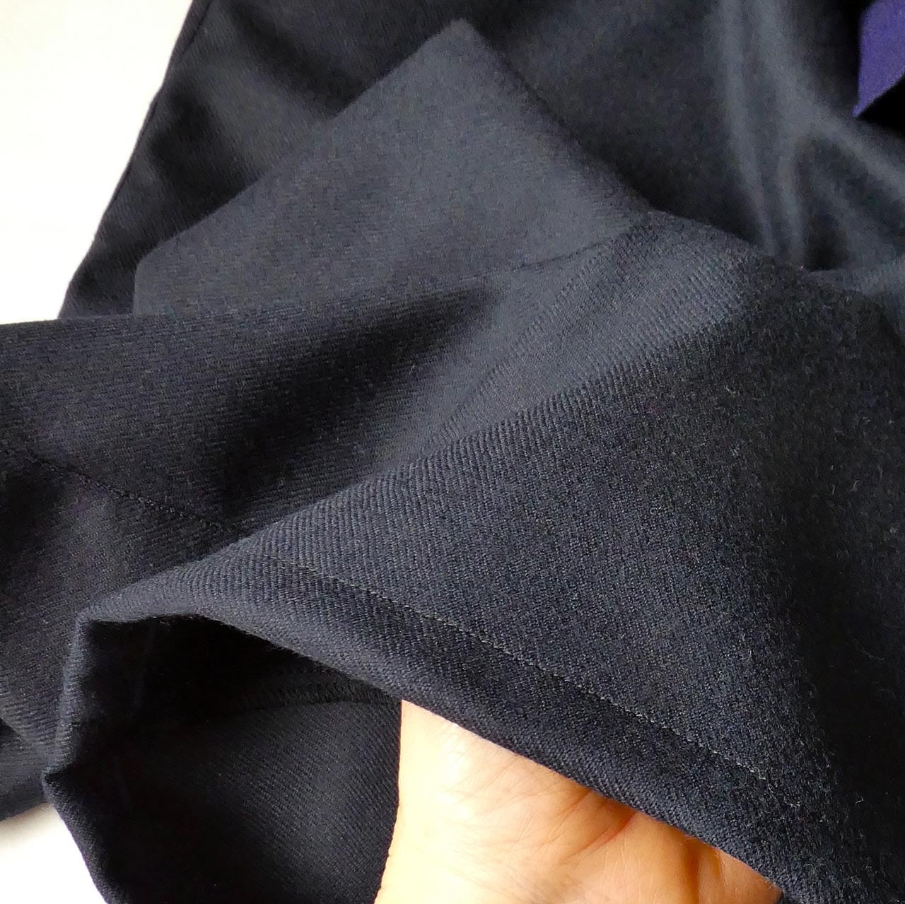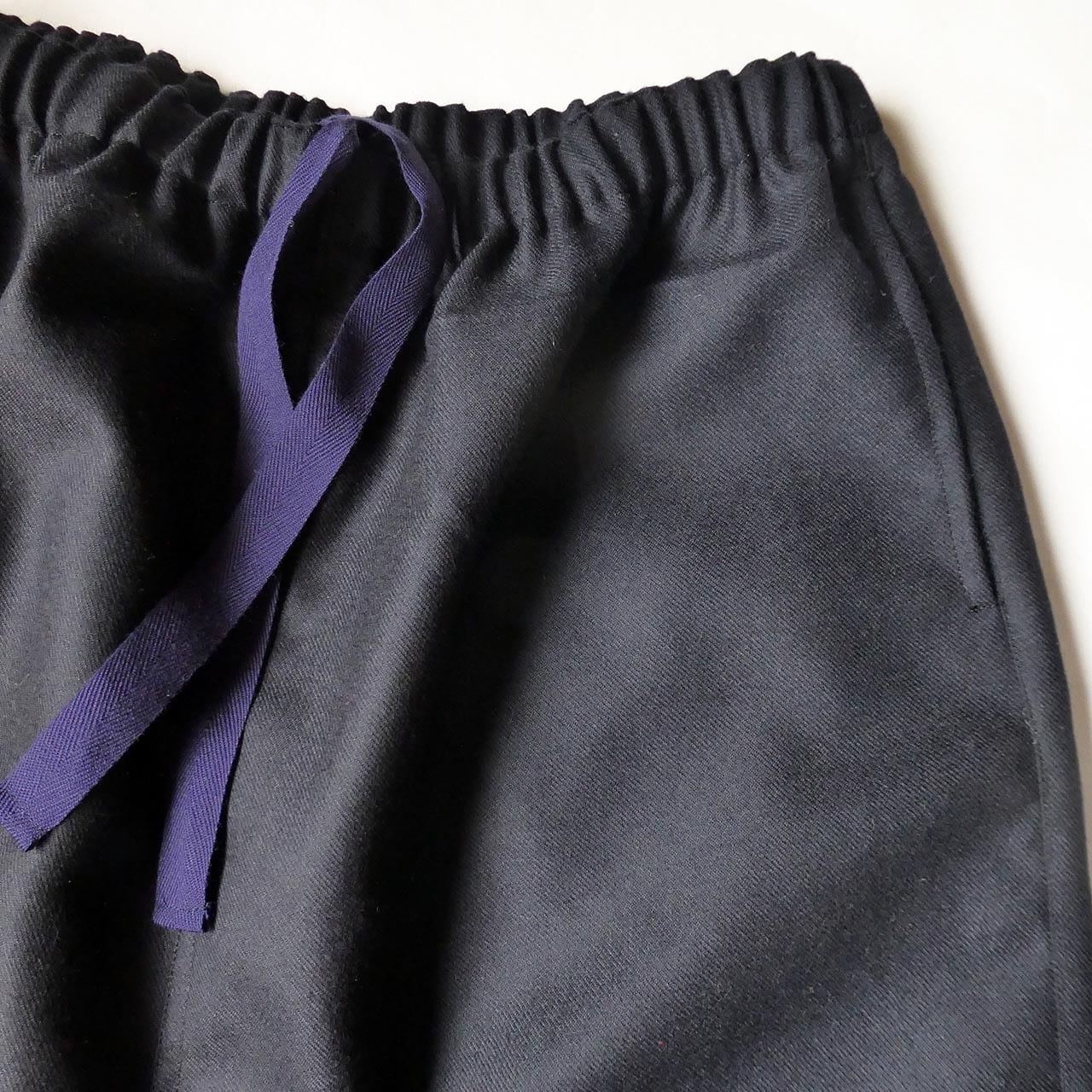 カジュアルに仕立てることが多いパンツですが、今回はウール100%のダークネイビーを使っています。