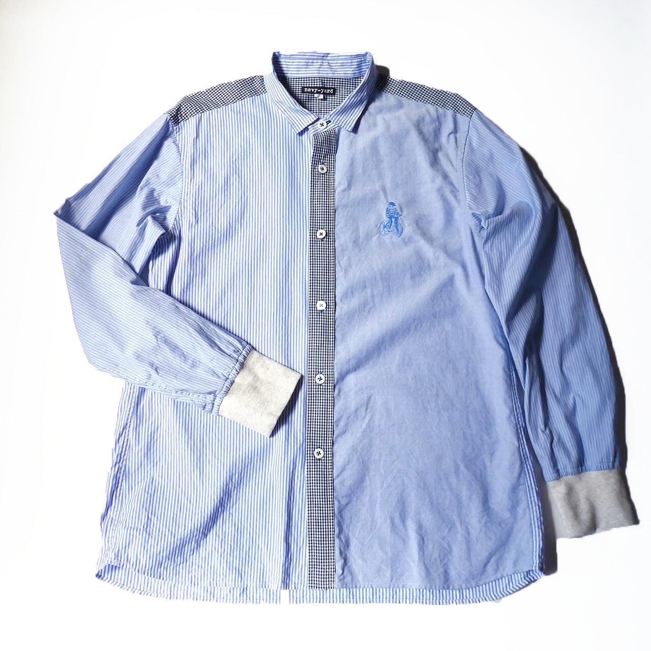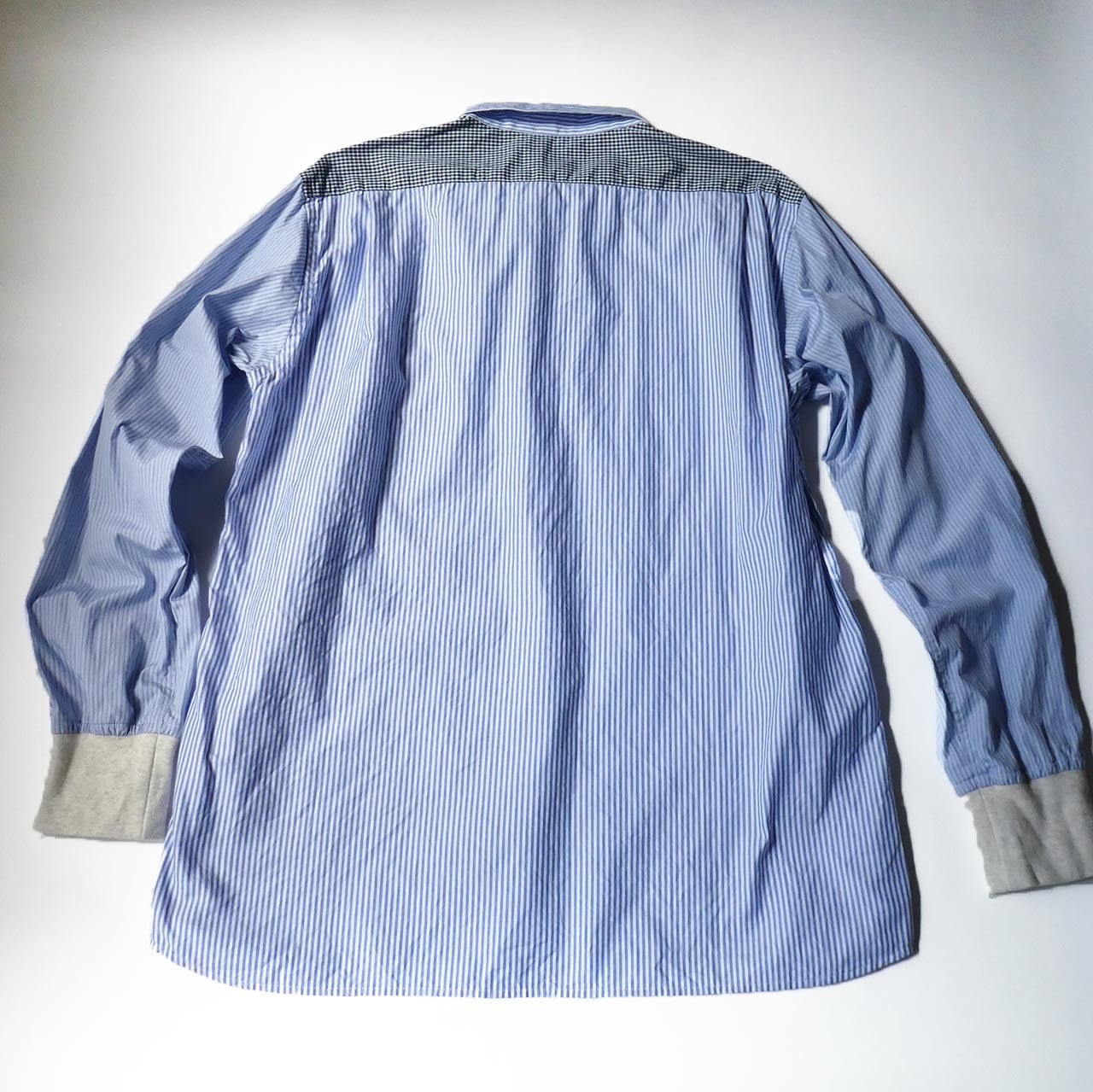 4種類のオックスフォードやストライプ、チェックを組み合わせた、袖口リブのワークシャツです。