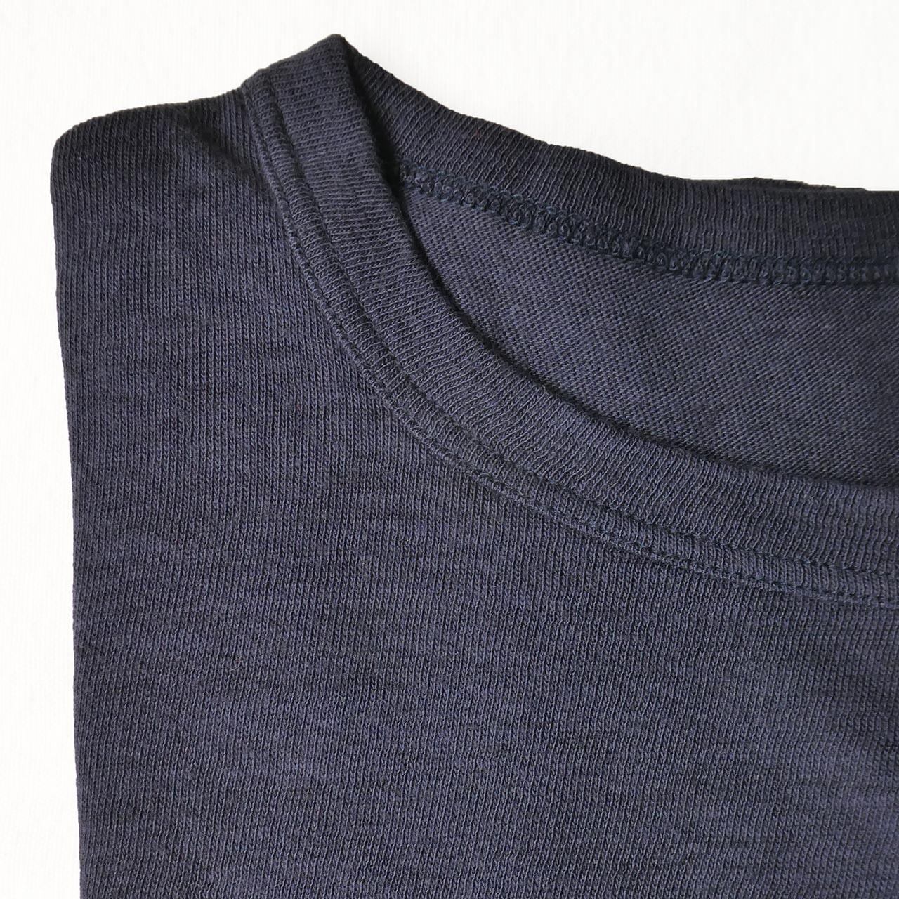 ガーゼ編みの薄手コットンを製品洗いして、さらにふんわり感を増した、シンプルなTシャツ。